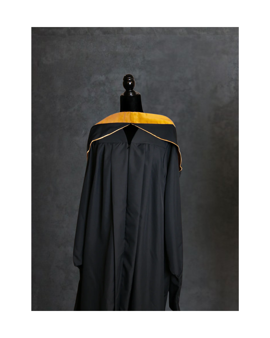Hoods are lined with Sacramento State's colors of green and gold. The binding or edging of the hood is velvet in the color pertaining to the subject of the degree. Science is gold. If you are unsure of your degree contact your department.